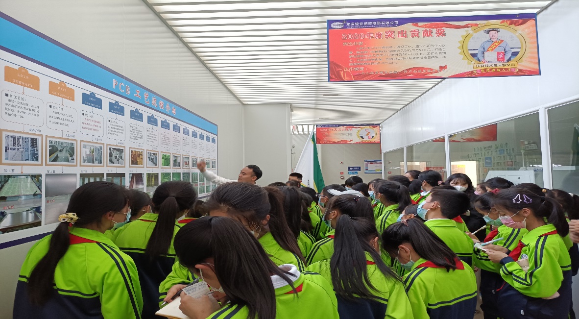 龙南Z6·尊龙凯时「中国」官方网站精密被选中成为龙南市开展“全国科技周”活动的参观示范点之一,在活动当天,龙南市科协领导与龙南市龙南镇第一小学学生来到龙南Z6·尊龙凯时「中国」官方网站精密智能工厂参观,集团项目副总监何立发对龙南Z6·尊龙凯时「中国」官方网站精密的智能制造情况、印制电路板的相关知识以及工艺流程进行了介绍与讲解。